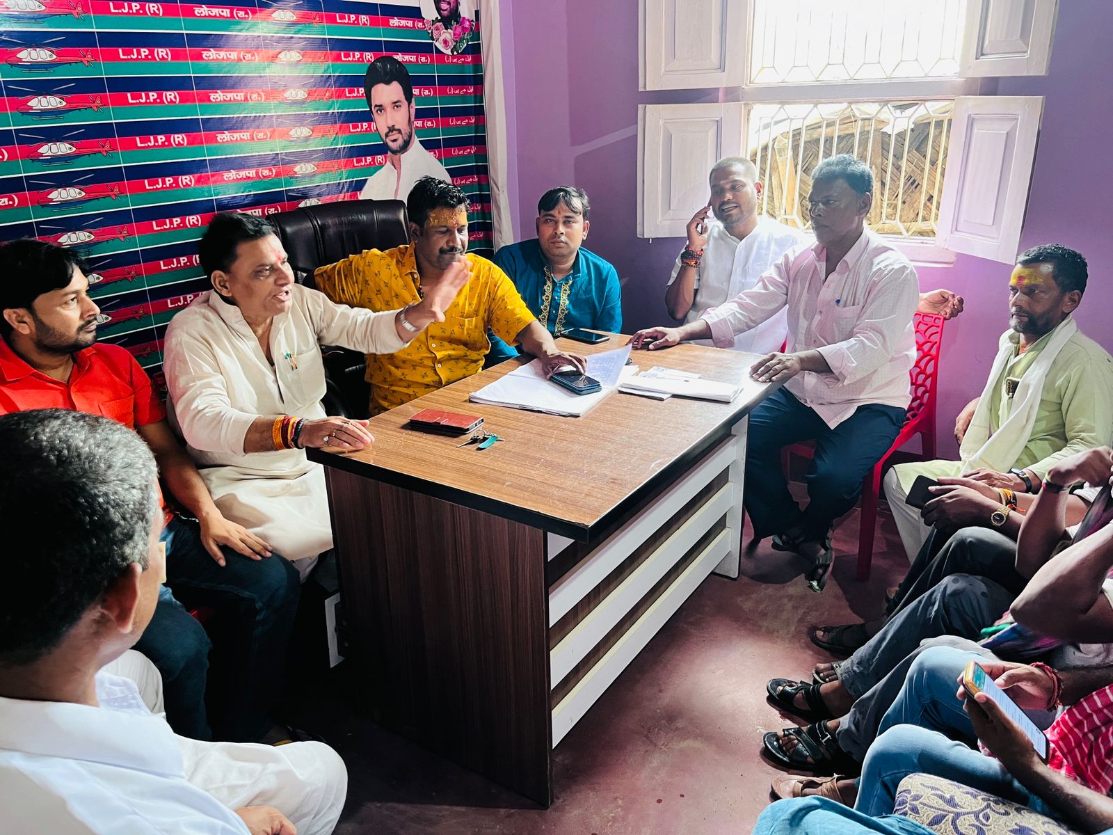 जिला प्रभारी दुर्गेश सिंह ने उपस्थित कार्यकर्ताओं को संबोधित करते हुए कहा कि हमारे नेता स्वर्गीय रामविलास पासवान जी की याद एवं उनके सम्मान में खगड़़िया जिले के सभी कार्यकर्ता जिला मुख्यालय से लेकर शहरबन्नी तक पोस्टर बैनर लगायें एवं चिराग पासवान जी के आगमन एवं स्वागत की तैयारी मे अभी से लग जांय।जिला अध्यक्ष शिवराज यादव ने कहा कि स्वर्गीय रामविलास पासवान जी की याद एवं सम्मान के लिए खगड़़िया के सभी पार्टी कार्यकर्ता तो क्या,तमाम आम आवाम हमेशा तैयार रहते हैं और रहेंगे।खगड़़िया के लाल रामविलास पासवान साहब कण-कण में बसते हैं।हम सभी चिराग पासवान जी के साथ हमेशा कदम से कदम मिलाकर चल रहे हैं और चलने को संकलित है।