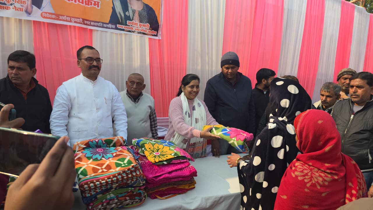 मकर संक्रांति के पावन और उल्लासपूर्ण अवसर पर खगड़िया नगर में सामाजिक संवेदना, मानवीय मूल्यों और जिम्मेदार नेतृत्व का एक अत्यंत प्रेरणादायक दृश्य देखने को मिला। नगर परिषद खगड़िया की नगर सभापति अर्चना कुमारी एवं प्रखर शिक्षक नेता मनीष कुमार सिंह के संयुक्त प्रयास से नगर के स्वच्छता कर्मियों के सम्मान में भव्य प्रीति भोज सह कंबल वितरण कार्यक्रम का आयोजन किया गया। इस आयोजन ने ठंड से राहत देने के साथ-साथ स्वच्छता कर्मियों को सम्मान, आत्मसम्मान और अपनत्व की अनुभूति कराई।