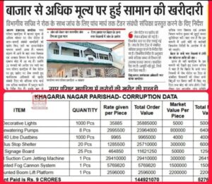 खगड़िया में इन दिनों सबसे बड़ा सवाल यही है—क्या जनता के टैक्स की गाढ़ी कमाई से खेल हुआ है, या फिर सब कुछ नियमों के तहत पारदर्शी तरीके से हुआ? मामला जुड़ा है खगड़िया नगर परिषद द्वारा Government e-Marketplace (GeM) के माध्यम से की गई करीब 14 करोड़ 49 लाख 21 हजार 70 रुपये की खरीद से। शिकायतें पहुंचीं नगर विकास एवं आवास विभाग, बिहार तक, जिसके बाद विभाग ने कथित तौर पर भुगतान और कार्यादेश पर रोक लगाने का निर्देश जारी किया और पत्र नगर कार्यपालक पदाधिकारी व जिला पदाधिकारी को भेजा गया बताया जा रहा है। आरोप है कि जिन सामानों की खरीद की गई, उनकी दरें बाजार मूल्य से कई गुना अधिक हैं। उदाहरण के तौर पर 1000 डेकोरेटिव लाइट ₹35,885 प्रति पीस की दर से खरीदी गई, जबकि बाजार मूल्य लगभग ₹5,000 बताया जा रहा है। 8 डिवॉटरिंग पंप करीब ₹29.95 लाख प्रति पीस, जबकि बाजार में लगभग ₹8 लाख। 240 लीटर के 1000 डस्टबिन ₹9,965 प्रति पीस, जबकि बाजार मूल्य लगभग ₹4,000। 20 बस स्टॉप शेल्टर ₹12.85 लाख प्रति पीस, जबकि बाजार में करीब ₹3 लाख। 25 सिग्नेज बोर्ड ₹4.64 लाख प्रति पीस, जबकि बाजार मूल्य लगभग ₹5,000। वहीं ट्रक माउंटेड जेटिंग मशीन ₹2.94 करोड़ में खरीदी गई, जबकि बाजार मूल्य लगभग ₹30 लाख बताया जा रहा है। आरोप लगाने वालों का दावा है कि यदि पूरा भुगतान हो जाता तो करीब 9 करोड़ रुपये अतिरिक्त खर्च होते। टेंडर प्रक्रिया को लेकर भी सवाल उठ रहे हैं। स्थानीय सूत्रों का कहना है कि टेंडर की सूचना न तो सूचना पटों पर चस्पा की गई और न ही अखबारों में व्यापक रूप से प्रकाशित की गई, जिससे पारदर्शिता पर सवाल खड़े हो रहे हैं। नगर परिषद के 34 वार्डों में सफाई कार्य आउटसोर्सिंग से कराया जा रहा है, जहां शर्त के अनुसार एजेंसी को अपने उपकरण स्वयं उपलब्ध कराने थे, लेकिन परिषद द्वारा उपकरण खरीदकर एजेंसी को उपलब्ध कराए जाने पर भी सवाल उठ रहे हैं। इधर नगर सभापति प्रतिनिधि ज्योतिष मिश्रा ने सभी आरोपों को बेबुनियाद बताते हुए कहा है कि खरीद प्रक्रिया पूरी तरह GeM पोर्टल के माध्यम से नियमों के अनुसार हुई है और जो संवेदक सबसे कम वैध दर (L1) देता है, उसी को कार्य आवंटित किया जाता है, इसमें किसी प्रकार का व्यक्तिगत हस्तक्षेप संभव नहीं है। उनका कहना है कि निविदा में हारने वाले संवेदक द्वारा अनावश्यक आरोप लगाए जा रहे हैं। फिलहाल मामला जांच के अधीन है और विभागीय रिपोर्ट के बाद ही स्पष्ट होगा कि खरीद प्रक्रिया में अनियमितता हुई है या नहीं, लेकिन खगड़िया में इस मुद्दे पर सियासी और प्रशासनिक हलचल तेज हो गई है।