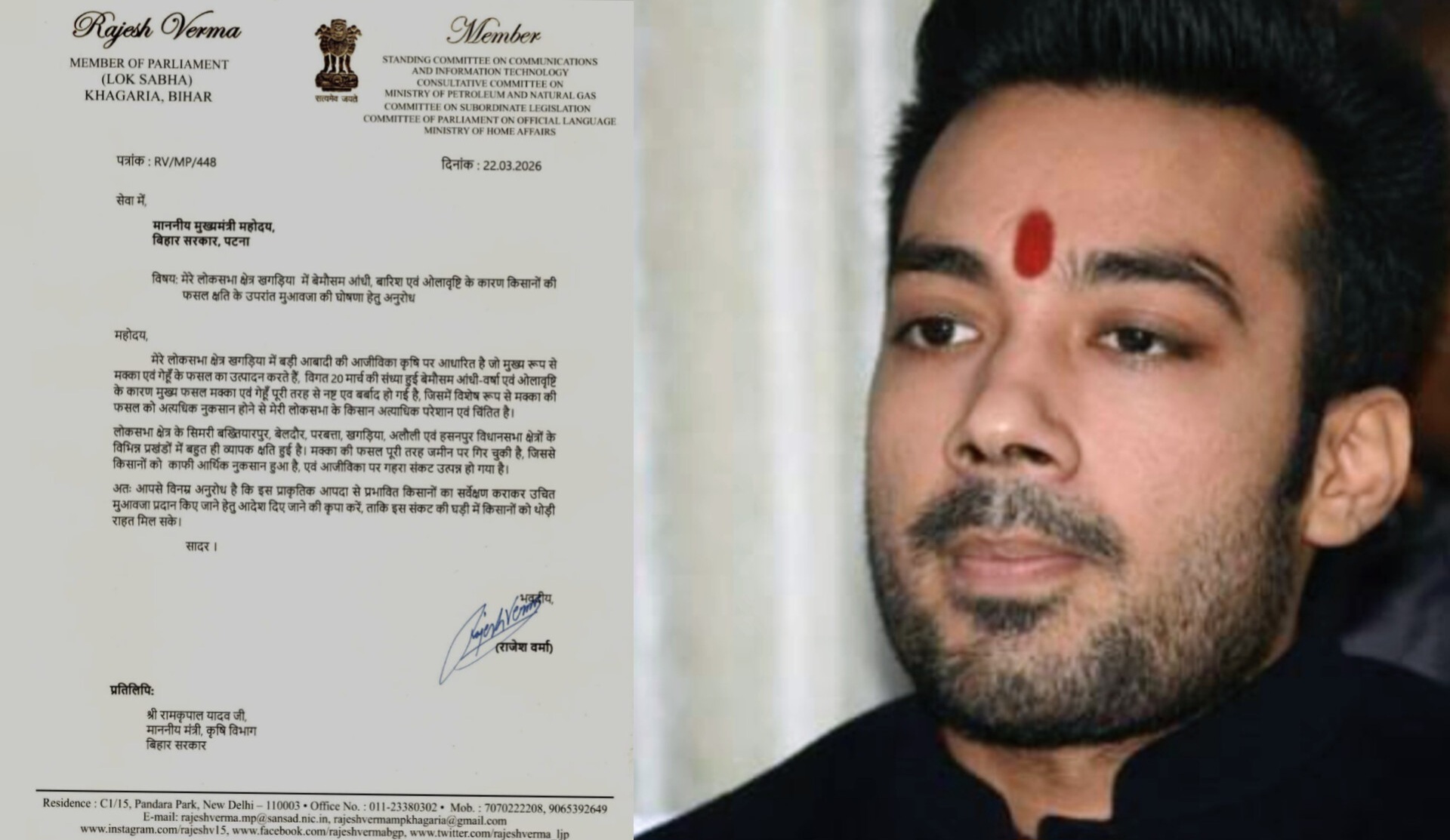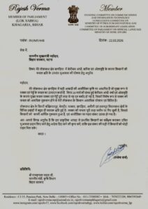 खगड़िया सांसद का बड़ा कदम — बेमौसम बारिश और ओलावृष्टि से तबाह गेहूं-मक्का की फसल पर तुरंत मुआवजे की मांग, मुख्यमंत्री से की त्वरित कार्रवाई की अपील