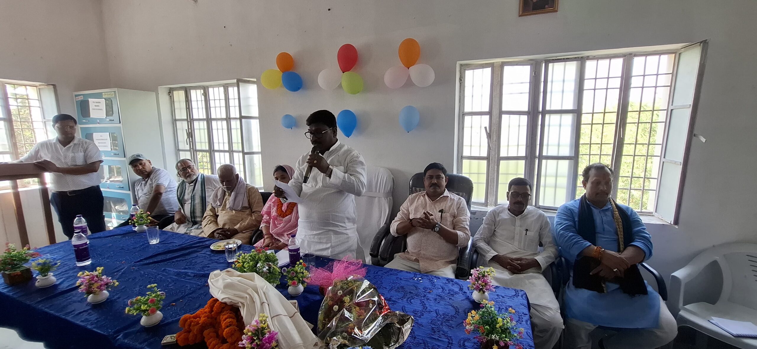 कार्यक्रम में प्रधानाध्यापक गुलनाज श्री ने विधायक और उनके साथ आये अतिथियों का स्वागत अभिनंदन करते हुए विद्यालय की कुछ खास समस्याओं की ओर ध्यानाकृष्ट करायी।संचालन शिक्षक प्रभाष कुमार कर रहे थे।