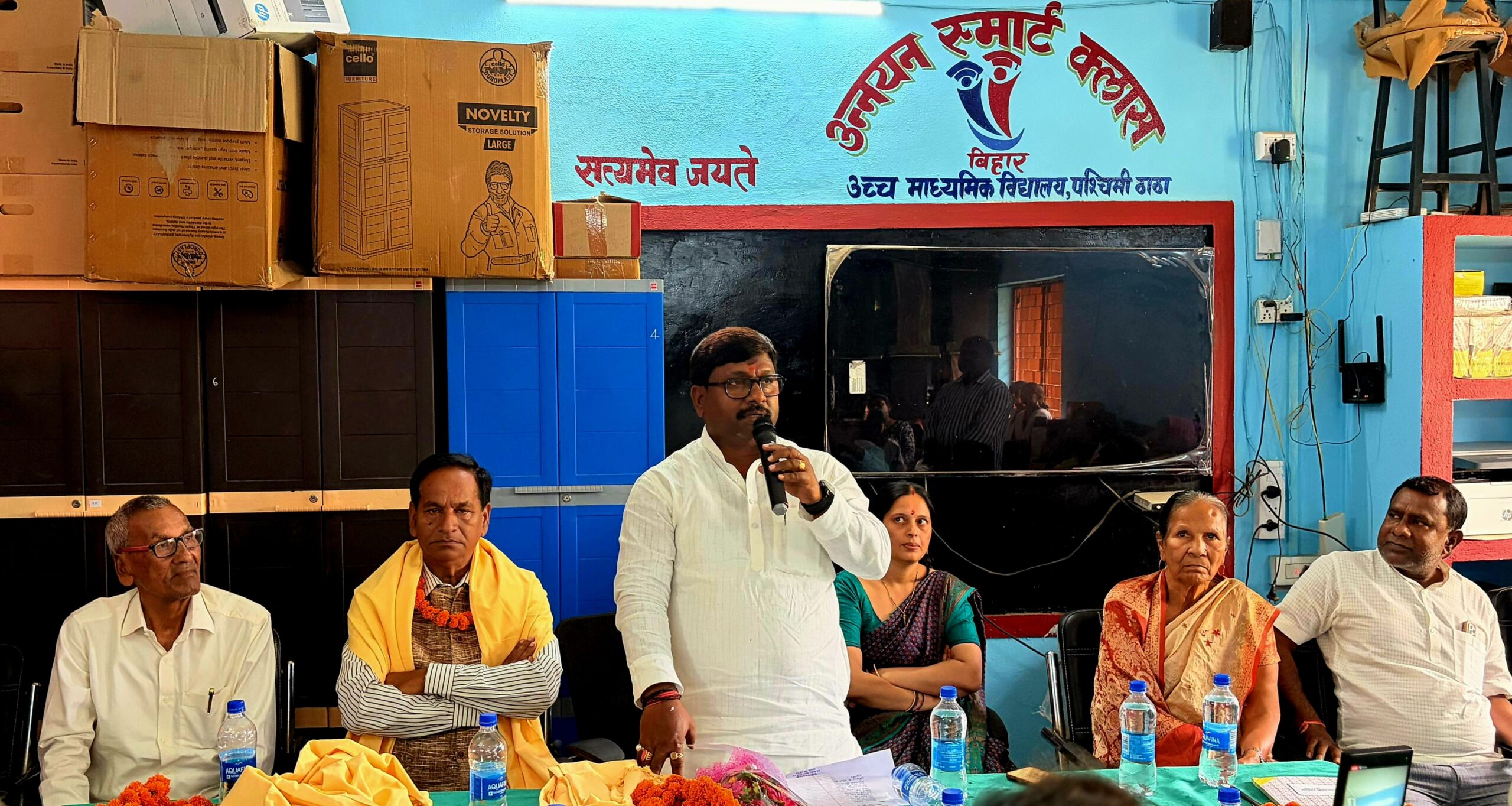 कार्यक्रम का संचालन बबलू कुमार ने किया।बैठक में स्थानीय जनप्रतिनिधि, शिक्षकगण एवं ग्रामीण बड़ी संख्या में उपस्थित रहे।अंत में विधायक ने सभी को भरोसा दिलाया कि विद्यालय को एक आदर्श शिक्षण संस्थान बनाने के लिए हर संभव प्रयास किया जाएगा।